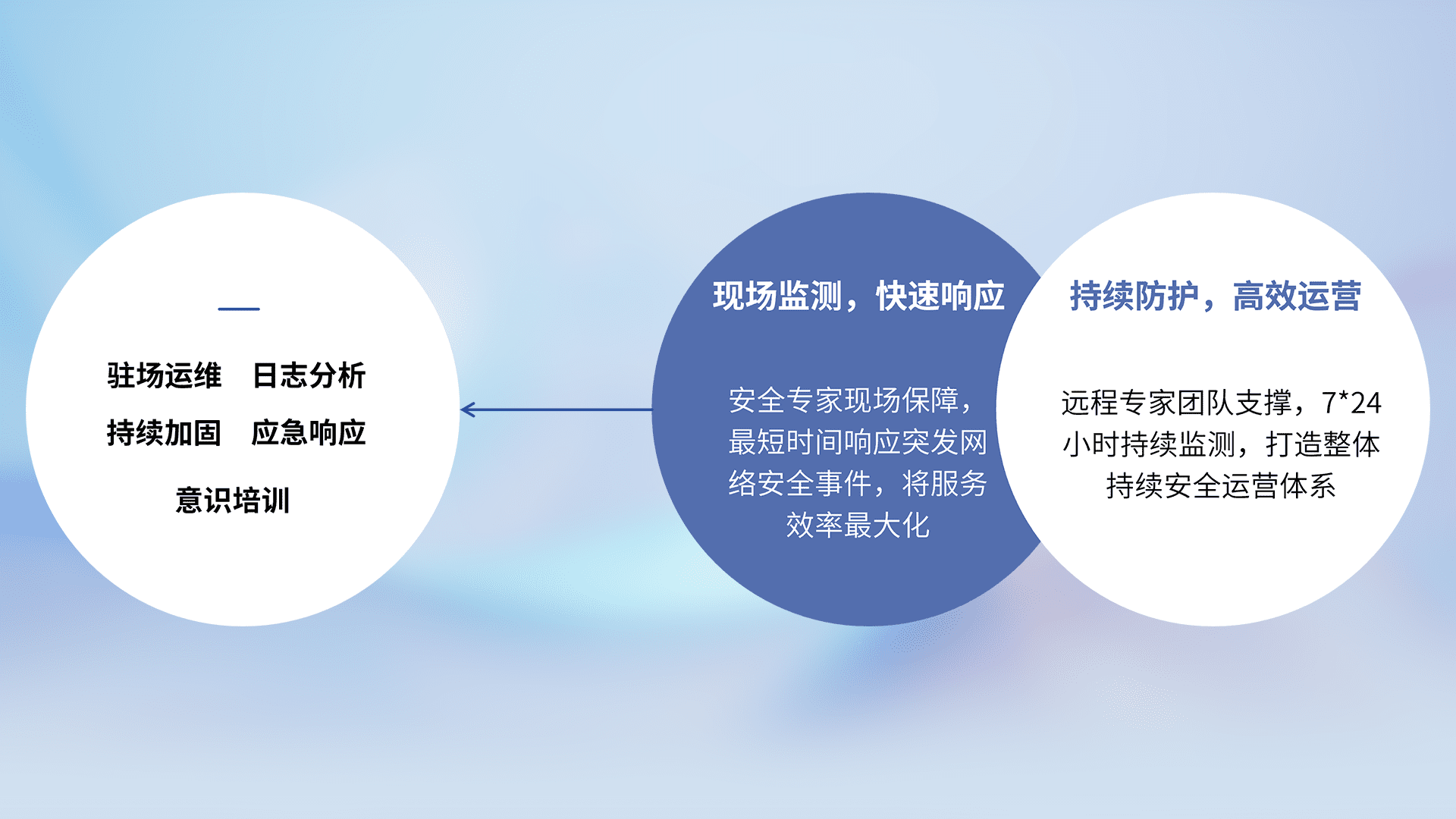 针对客户行业特性,,提供专属的一站式安全管理服务,,,帮助客户全面感知网络空间威胁,,,,通过安全专家的线上、、、线下防护支持,,,实现风险闭环,,,,将安全保障常态化,,为客户打造常态化安全运维运营服务。。。。